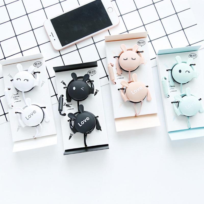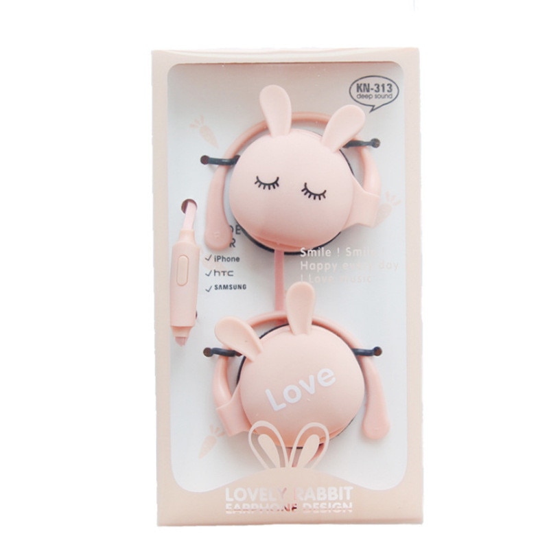 QearFun Cartoon Rabbit Ear Hook Wired Earphone Sport Running Stereo Headphones Children Girl Headset For Mobile Phone