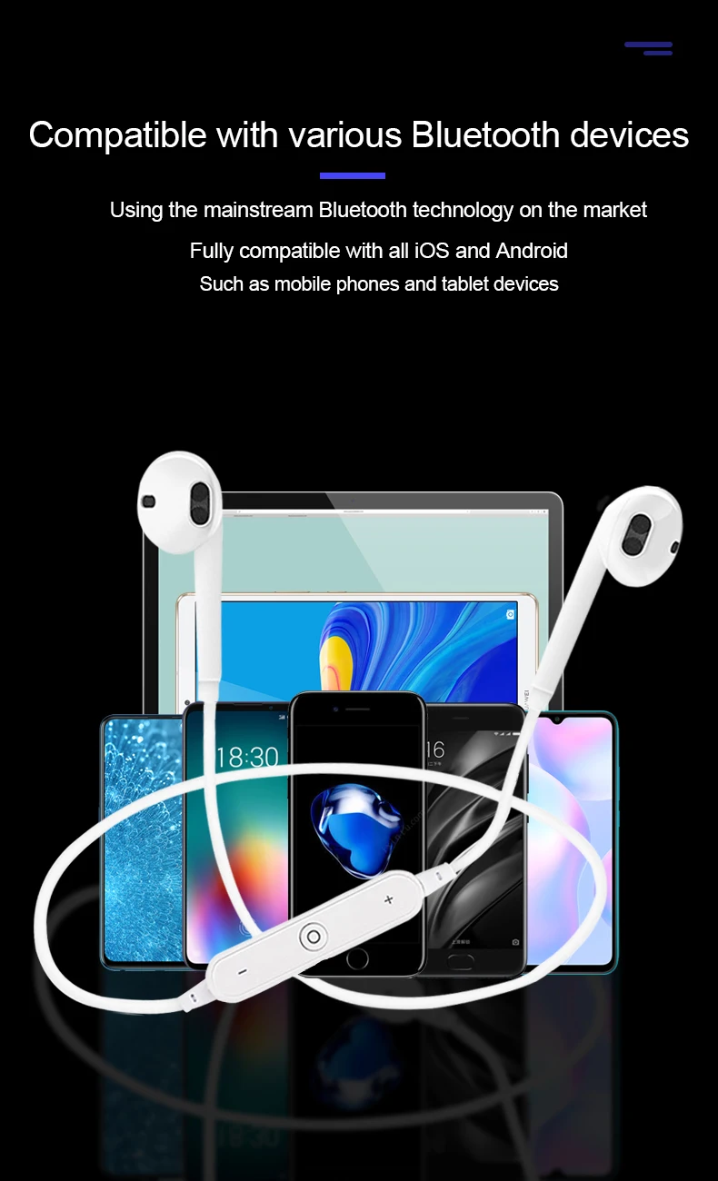 S6 Sport In-Ear Neckband S6 Wireless Headphone Bluetooth V4.1 Earphone With Mic Stereo Earbuds Headset For iPhone Xiaomi Huawei